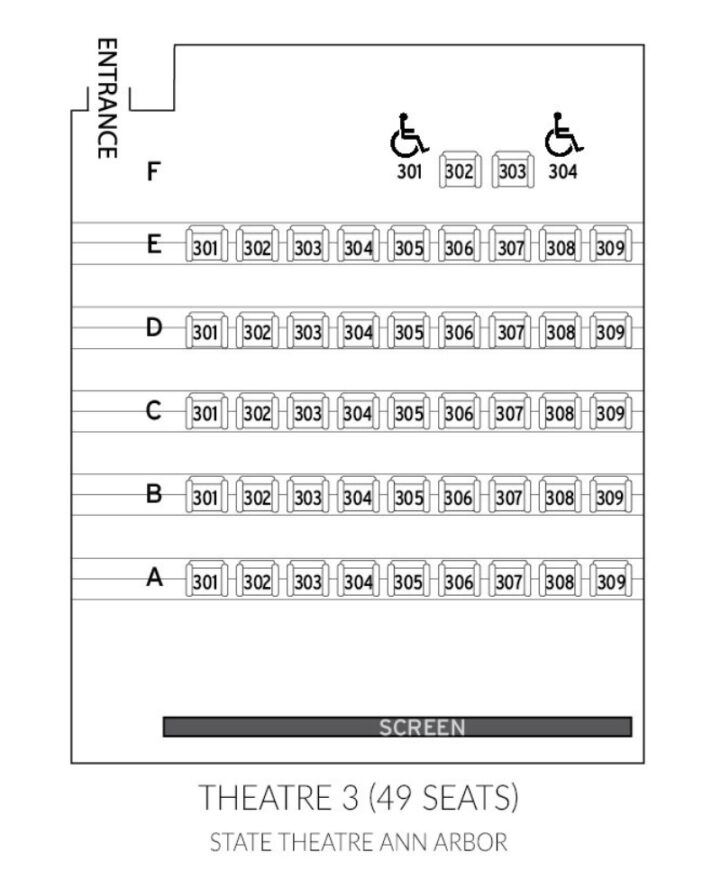 Handicap accessible restrooms are located in the Michigan Theater’s first floor restrooms and in the State’s second floor restrooms.